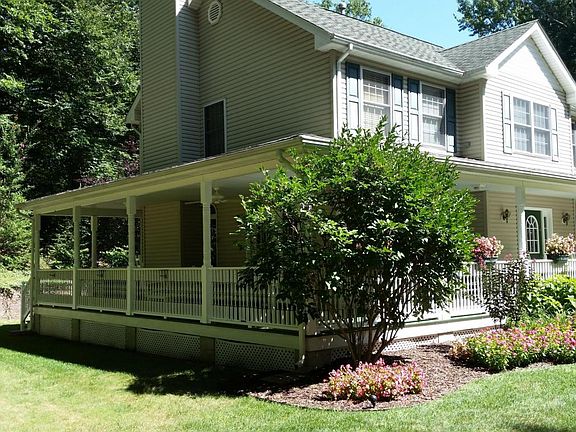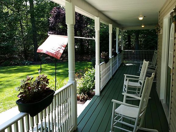 DON'T MISS THIS SPECIAL OPPORTUNITY TO BE THE PROUD NEW OWNER OF THIS MINTY ALMOST 3000 SQUARE FOOT COUNTRY COLONIAL WITH 8' TO 10' WIDE WRAP AROUND COVERED PORCH NESTLED ON A QUIET AND PRIVATE WOODED 3 ACRE LOT. OUTSIDE...ATTRACTIVE LANDSCAPING SURROUNDS YOU WITH PAVERED PLANTER BEDS, RETAINING WALLS AND A PAVERED PATIO WITH FIRE PIT. INSIDE...YOU WILL FIND A METICULOUSLY CARED FOR HOME WITH 2 LARGE LIVING AREAS. HUGE FAMILY ROOM WITH BRAZILIAN MAHOGANY FLOORS, PLANTATION STYLE SHUTTERS, VAULTED CEILING AND BAR WITH GRANITE COUNTERTOP. LIVING ROOM WITH OVERSIZED FP AND BAY WINDOW. FORMAL DINING ROOM HAS OAK FLOORS AND CHAIR RAIL. LARGE EAT-IN ISLAND KITCHEN DESIGNED WITH CHERRY CABINETS, GRANITE COUNTERS, TUMBLED MARBLE BACKSPLASH, CERAMIC TILE FLOORS AND NEWER STAINLESS STEEL APPLIANCES.