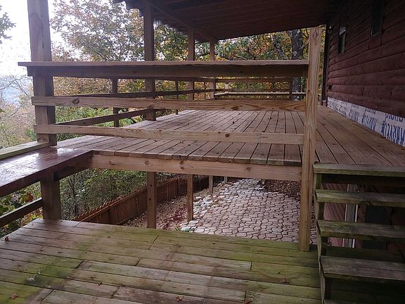 LOG SIDED BEAUTY! Wood interior gives this home a cozy ambiance. The main level affords the great room, living room and bath. The lower level has 2 bedrooms and bath. Front and rear decks for relaxation and taking in the beautiful Ozark hills. Lovely!