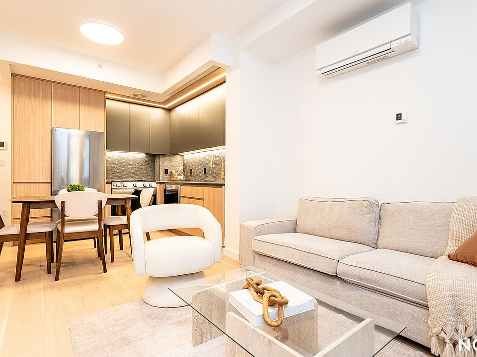 Gorgeous 1 bedroom apartment 1 bath in brand new building on Brooklyn Heights/Boerum Hill border. This unit has a balcony, tasteful finishes throughout the apartment including full size stainless steel appliances, stone countertops, beautiful hardwood floors, and in-unit laundry to name a few! This is an unbeatable location with swaths of restaurants, shopping, entertainment, and transit options within steps of your front door. Amenities: -Central A/C -Eat In Kitchen -Stainless Steel Appliances -Dishwasher -Built in microwave -High Ceilings -Hardwood Floors -Natural Light in Living Area -Washer dryer installed -Laundry in unit -Large Closets -Walk-In Closet -Individual Climate Control -Video Intercom -Elevator -Laundry in building -Bike storage -Gym -Roof access -Stone countertops