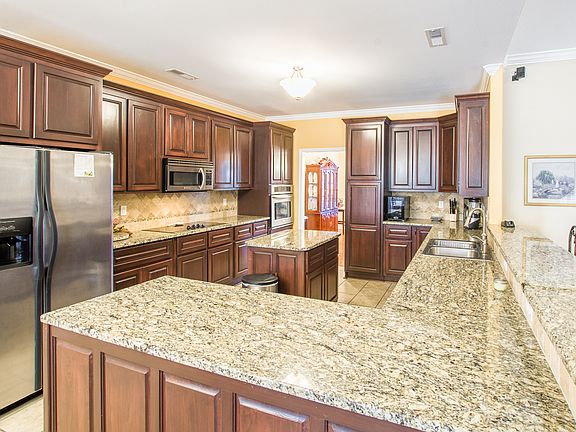 3,100sqft 4bed/4bath full brick rancher rested on a treed 1.15 acres. Granite, beautiful wood cabinets, kitchen island, stainless steel appliances, tile backsplash throughout kitchen. Isolated master with incredible glamour bath including granite and tile shower. Gorgeous wood floors and crown molding throughout commons areas. Formal dining room. Fireplace in family room with vaulted ceiling. 4 car garage including detached building for all of your needs!