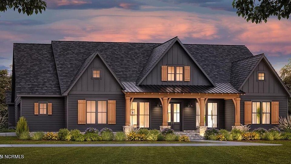 Welcome to your dream home! This stunning 4 bedroom (all on the 1st floor!), 3 bath home is designed for both comfort and style. The open concept seamlessly connects the dining area featuring tray ceiling, the beautiful kitchen equipped with an large center island, and the inviting family room.With soaring 10 ft ceilings, a cozy fireplace and custom built ins, this space is perfect for entertaining or enjoying quiet evenings at home. The spacious primary suite boasts a vaulted ceiling, his and hers closets and an amazing walk in shower. You'll love the convenience of the laundry room which can be accessed from both the mud room and the primary suite. The second floor has an enormous bonus room and full bathroom for added convenience. And you will absolutely love the porches in this hoe that take advantage of the picturesque surroundings. Close to shopping and dining and an easy commute toRaleigh make this home the perfect retreat to come home to!