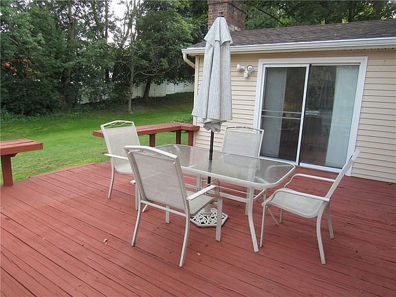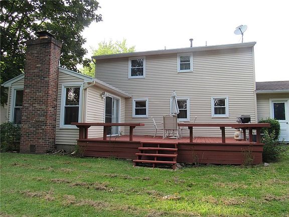 Great colonial in sought after neighborhood with Fairport electric! Nice eat in kitchen, Formal dining room w/fireplace, Living & family rooms, Large family room boasts a 2nd fireplace & sliding doors to rear deck, Nice hardwood floors thru-out, Lots of storage and good size bedrooms, Great space for man-cave in the partially finished lower level, Within the last 5-6 years the vinyl thermopane windows (ALL), siding, garage doors, high efficient furnace & central air were replaced, New driveway (2014), Tear off architectural roof, 2 car garage, Well maintained by long term owners! Come take a look! This home is part of the 100% MBG Program.