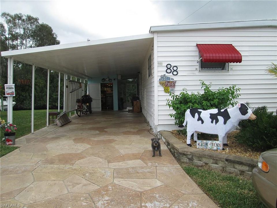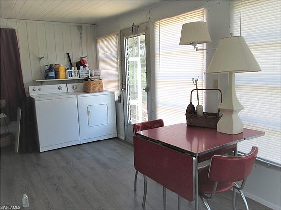 This a two bed/two bath waterfront with a dock and a nice screened in porch to sit and watch the wildlife. No houses across the canal--but lots of birds. Home is totally furnished and has laminate floor throughout main part of house. Bright kitchen with plenty of counter space and storage. Inside washer and dryer. Has a large carport with finished decorative driveway. Includes a private dock. Price includes share for the lot and ownership in the co-op. Maintenance fee is $320 a month which includes water and sewer, lawn mowing and edging, trash pick up twice a week and the use of all amenities in the park. Orange Harbor is 55+ resident-owned, pet friendly, waterfront community close to I-75, downtown Ft. Myers and Manatee Park. Property located on the Caloosahatchee river that flows to the Gulf.