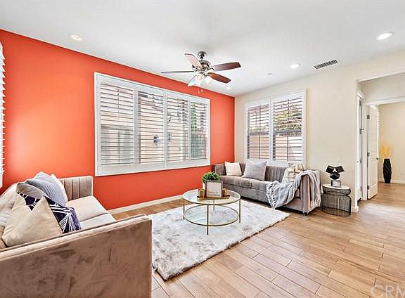 Back on Market!!! Welcome to this lovely residence Zinnia Plan 4 with 4 beds and 3 Full baths in Cypress Village. The cozy two story home boasts white cabinetry, open floor plan with a lot of natural light throughout the house. Highly upgraded Kitchen includes ample space for storage, Bosch stainless steel appliances with free standing range, LG refrigerator, Oven/Microwave, and dishwasher. The Kitchen is open to the dining area and living room, perfect for family entertaining. It also features recessed lighting and fan outlet at Living Room and Master Bedroom. Downstairs, private and spacious guest bedroom with full bath. The bedroom is overlooking the private courtyard. Downstairs, it has tile and carpets throughout on second floor. Upstairs, spacious master bedroom features walk-in closet, large bathroom with dual vanities, nice counter tops, and walk-in shower. Nice size Jack & Jill bedrooms are completely separated from the master bedroom. Two-car attached garage with direct access to the kitchen. Enclosed Patio for entertaining and relaxation. Cypress Village is conveniently located to schools, resort style recreation areas, take a dip in the pool, play at the park, barbecue with friends, or take a hike on the open trail. Convenient access to Irvine Spectrum, Woodbury Shopping Center and the Great Park, award winning Irvine School district and freeways.