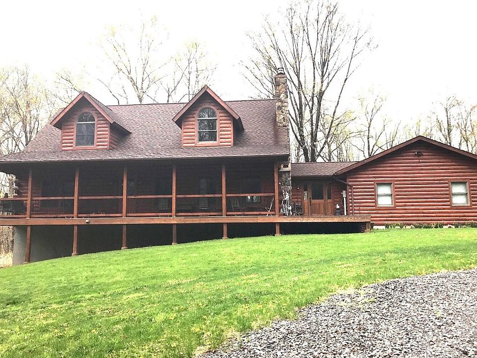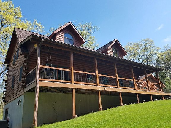 Absolutely stunning pristine Log Home on 10 private acres now being offered!! Entering down a long drive lined with rustic stone walls you will have complete privacy and the serene feeling you are looking for in a home. Pulling into the new circular drive there is a beautiful front porch with its stone fire place. Newly poured stamped concrete for the walkway and the large back patio which is great for entertaining and looking at the beauty nature has to offer. Entering into the home there is a comfortable Great Room with its amazing cathedral ceilings, stone fireplace and open floor plan with post and beam. The kitchen is updated with tastefully done brand new granite counter top and newer appliances with french doors leading to the back deck.The main floor bedroom is convenient yet private with warm pine walls, walk-in closet and master bath. Main floor laundry with a mud room and sink,central vac,high end new blinds,and security system. Downstairs the 900 sq foot walkout basement is great for gatherings, adds so much space for friends and family added is a new Wet bar, game area, stone fireplace and cedar closets. This home is the perfect get away or full time living in a wonderful location away from a busy life style. Easy commute to New York City,Entertainment and Major highways The current home owners have done so many upgrades and made this home and its grounds maintenance free. Don't miss this one! It is simply beautiful!