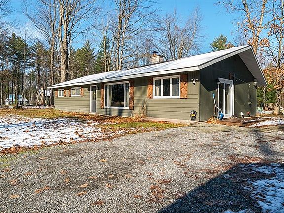 Beautiful 3 bedroom 1.1 bath ranch on 24 acres! This home is larger than you would imagine. Enter through the side door to the open foyer and living room with wood burning fireplace and large picture window. Lots of natural light in this home and storage space. Take a right from living room into the kitchen and formal dining area which is also wide open with beautiful bamboo flooring continuing from foyer and living room throughout kitchen and dining. Kitchen boasts cathedral ceilings, concrete countertops. tons of cabinet space and storage, and a doggie door! Master bedroom has a slider out to a deck with concrete pad set up to put a hot tub in. Enjoy the firepit next to the pond and do some fishing or dine outside in the screened in gazebo. Walk a little further out next to the barn and there's an area where you can also enjoy a fire and some wildlife. The large barn on the property does need work. Tons of improvements to the property, including complete gut and reframe of interior of garage and ready for subpanel install and connection to house. Too many improvements to list. Close to Tug Hill trails and Oneida Lake and easy access to stores and 81.