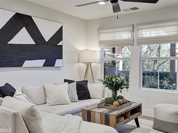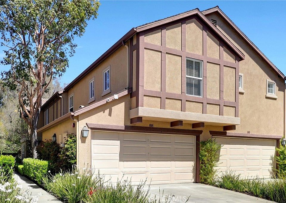 Situated in the heart of Ladera Ranch, this beautiful, immaculate, turnkey and recently remodeled carriage unit condo, is ready to for you to upack and enjoy Ladera Ranch living. The modern and welcoming vibe of the brand new kitchen completed in March of 2024 with the fully remodeled master bathroom finished in July of 2022 welcomes you instantly. Luxury vinyl plank through out, custom quarts counter tops, custom tile, brand new Bespoke Samsung kitchen appliances, large single bowl black stainless steel sink and crisp white walls welcome you home. The condo has been meticulously designed from top to bottom and includes details that scream continuity and care. There are 2 full bedrooms and bathrooms as well as an additional office space down stairs. The house is equipped with a whole house soft water system, and has been fully repiped. All new plumbing fixtures in sinks, showers, kitchen as well as low flow toilets, ceiling fans, light fixtures, recessed lighting, dimmers, Waze thermostat, washer and dryer included and, 2 car garage + 2 car driveway(rare), camera & door system, fully operable from your smart phone, wired data included in Ladera Ranch, and fresh paint compliment the warm color pallet. Situated close to all schools, with elementary a 5 minute walk and middle a 10 minute walk as well as an e-bike or walk to shopping and amenities. Full access to all of Ladera's pools, parks, festivals, trails and the home sits on the rose garden courtyard right outside your door. The terrace is fully screened in and is a kitty paradise. There is no stone left untouched in this home. You do not want to miss touring this home!!