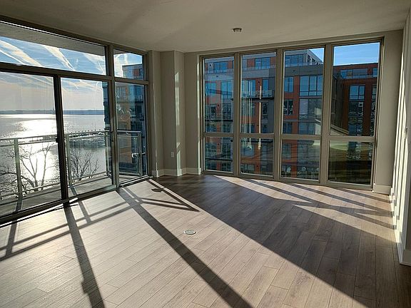 Unobstructed waterfront views of the Potomac and Anacostia confluence. Be the first to occupy this brand new Peninsula 88 condo at Buzzard Point. 7th floor unit with breathtaking views from the great room and private balcony. You won't lose sight of the rivers from either of the two en-suite bedrooms. Equally sized bedrooms, both have large walk-in closets, and a choice between an oversized tub in one, and an infinity shower in the other. Additional powder bath at entrance. Gourmet kitchen with Jenn Air appliances and plenty of storage and under cabinet lighting. Quartz countertops throughout, plank wood flooring, and 9' ceilings with floor-to-ceiling windows. Oversized washer and dryer in unit. Head to the rooftop to snuggle by the private fire pit or meet new friends at the linear fireplace near the BBQs and outdoor dining pergolas. Catch the sunset over the Capitol, then head to the owners lounge to shoot pool, grab a cold drink, watch a show, or catch up on work at one of the lounge desks. On-site Building Manager & remote Concierge Services, common area Wi-Fi, 24hr security camera monitoring, Luxor package room system, dry cleaning service, refrigerated storage for food deliveries, 2 electric car charging stations, dog wash area, car wash area, and bike and kayak storage. Optional garage parking space for $250/ month. Unfurnished unit. Walk to Audi soccer field, Nationals baseball field, the Wharf, Navy Yard, shops, dining and more!