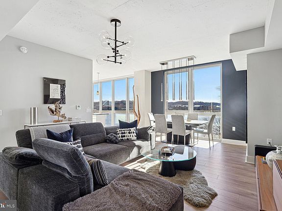 Amazing 4th floor corner unit in Peninsula 88 with walk-out balcony and river views overlooking the Frederick Douglass Bridge and the intersection of the Potomac and Anacostia Rivers. Located at the tip of Buzzard Point on the Southwest waterfront with only 150 feet between the building and water's edge. The unit has an open, modern feel with top quality contemporary finishes including luxury engineered wide plank wood flooring, quartz countertops, 10' ceilings, floor to ceiling windows and large living spaces. The sweeping waterfront views will make you forget how close you are to the city--especially when you can relax or dine on the private corner balcony off the kitchen. Building amenities include a top floor community/party room and sky terrace with scenic river views, 2 firepits, 3 dining pergolas, gas grills and outdoor lounge furnishings. Building has common area Wi-Fi, 24 hour monitoring, bike and kayak storage, a heated pet spa, dry cleaning service, refrigerated storage for food deliveries, 2 electric car charging stations, a car wash area and an on-site building manager with remote concierge services. Peninsula 88 is a LEED Silver certified building and won the 2021 Best Washington/Baltimore High-Rise Condominium Community award from Delta Associates. Come see the best that the Southwest waterfront has to offer!