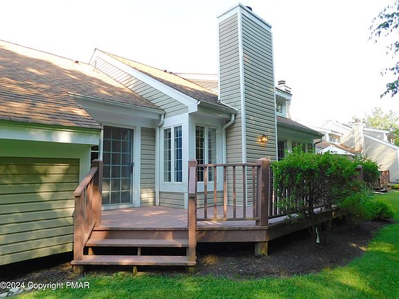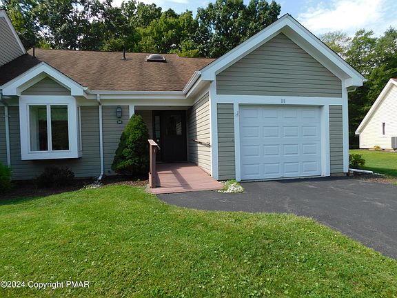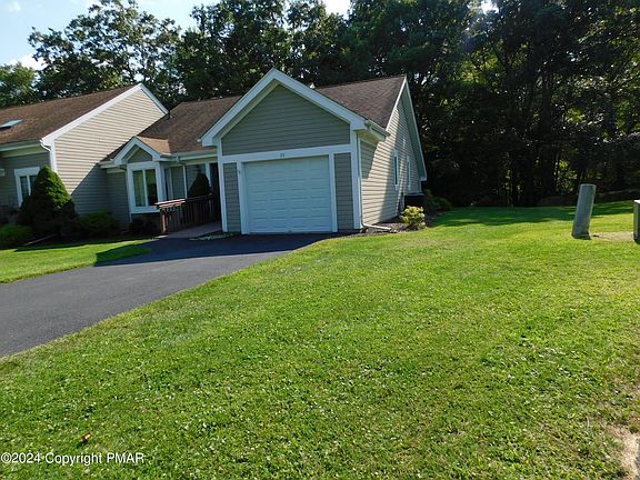 Very nice Townhouse in Labar Village the Poconos most sought after 55+ Senior Community. This home features 2 First Floor Bedrooms with full bathrooms in each. They both have walk in showers. The open living area is filled with natural light and multiple exits to the rear deck where you can hear the Creek running and it is a natural trout stream. There is a loft to use however you like as a quite sitting room or an extra place for guests to stay. The loft also has a half bath and storage space as well. Dont forget there is a large one car garage The community is lovely all year with several ponds and a wandering creek with walking paths, a Senior Clubhouse with Library an exercize room, game room to play board games and card games with your friends. Heat pump & hot water heater are New