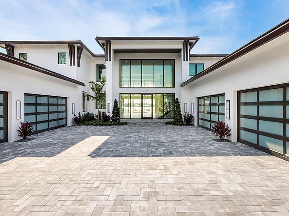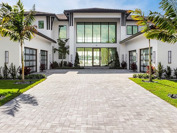 Discover this stunning waterfront masterpiece of exceptional new construction on the scenic Loxahatchee River, offering breathtaking blue water views and unparalleled luxury. Grand interiors feature 23-foot ceilings, a spectacular floating staircase, and an expansive family room, ideal for entertaining. A gourmet, chef's kitchen boasts backlit quartz countertops and seamless water views. Encompassing over 2,000 square feet, a luxurious master suite incorporates a breakfast bar, sitting room with a fireplace, two oversized closets, a spa-like bathroom, and a private balcony. Four additional bedrooms have en-suite baths, for a total of 5 bedrooms, 6 full baths, and 2 half baths. An 8-car garage with a car enthusiast's clubroom allows you to keep an eye on your prized vehicles while a den and tackle room round out the living and entertainment areas in this spacious home. Enjoy an outdoor oasis with a two-story covered patio, sunken firepit, infinity-edge pool with fire bowls, oversized hot tub, waterfall-fed pergola, and a new dock with direct water access. This extraordinary home is a boater's dream and the epitome of modern luxury. Don't miss this rare opportunity!