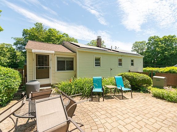 Welcome to this charming Single Level Living Ranch. Enter the enclosed porch wrapped in knotty pine & surrounded by windows that leads to the Kitchen boasting vinyl plank flooring, white cabinets & wainscoting. Off the kitchen, find a Full BA, 2 BDRMS & a Living RM w/ a picture window, filling the space w/ natural light. Outside, relax on the patio surrounded by mature trees, gardens & a fence, creating a private oasis for unwinding, gardening & enjoying nature’s sounds. Conveniently close to commuter Rt 119, nature spots for excursions & local shops. Enjoy peace of mind w/ transferable leased solar panels providing 100% energy savings & a new HW heater installed in 2023. The BSMNT provides plenty of storage space, along with the exterior garden shed. Situated on a ½ acre lot, enjoy a blend of comfort & convenience in a serene setting. CASH BUYERS ONLY - Septic failed, new septic design and install is buyer's responsibility.