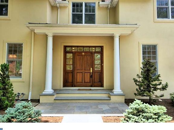 Enjoy life in Princetons highly sought-after western section in this fabulous, custom-built home that combines a grand scale with comfortable livability in its 4,500 square feet of living space. The pleasing stucco exterior and rich, mahogany front door with sidelights and transom add to the curb appeal created by the new, bluestone walkway and exceptional landscaping. The two-story formal living room enjoys natural light from a row of fixed windows above the French doors, in addition to the recessed lighting and vaulted ceiling. The living room and dining room are separated by a gas fireplace. Just past the living room lies a study with a secondary staircase providing access to the second floor. Enter the first-floor master bedroom suite through the study. The master bedroom features a tray ceiling, recessed lighting, deck access through French doors, a walk-in closet/dressing room, and a lavish master bath with a glass-enclosed shower and a separate, jetted tub. The centerpiece of the kitchen is the large island with granite countertop, prep sink, Wolf warming drawer, storage cabinets and counter seating. Task lighting is provided by pendants above the island, with room lighting provided by recessed lights. The soft-close cherry cabinets have pull-out shelves for easy accessibility. Chef quality appliances include a Wolf double-oven, dual fuel, six-burner plus grill; Wolf microwave; Thermador refrigerator; Miele dishwasher; GE Monogram trash compactor. From the kitchen, enter an expansive great room with high ceilings and a walkout bay window overlooking the woods and just begging for a table and chairs for your daily dining. Upstairs, find a second master suite, plus two additional bedrooms that share a full bath. The lower level has a spacious library with bookcases and a fireplace, as well as access to the garage or the bluestone patio leading to the backyard. Outside, .68 acres of partially-wooded land awaits, including a footbridge above a stream. Enjoy peace of mind, courtesy of the GENERAC back-up gas generator.