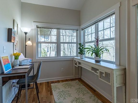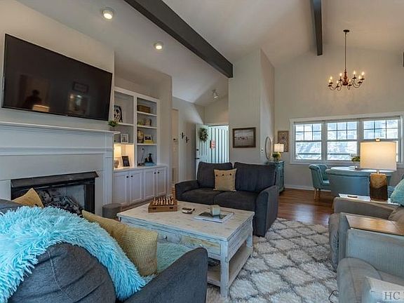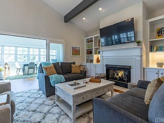 CHARMING COTTAGE. Wind your way to the top of the cottage community of Chestnut Hill to find this charming mountain home. It is a one level home with two bedrooms and two baths plus an enclosed sunroom that could be used as a flex space or third bedroom. Both of the bedrooms are oversized and can accommodate two beds or a sitting area. The spacious living room has a new gas fireplace and a vaulted ceiling and the remainder of the ceilings are nine feet. Beautiful refinished white oak floors are featured through the house, bedrooms are carpeted and baths and laundry are tiled. The kitchen has been renovated with new appliances, faucet and hardware. The baths were completely updated with new countertops, cabinets, fixtures, lights, mirrors and flooring. The laundry room has new washer, dryer and shelving. All walls, ceilings, trim and beams have been painted. Four new fans were installed. There is a large newly screened porch off of the sunroom providing the perfect spot to enjoy the mountain view and treetop living. The attached single car garage has built-in closets with shelving and there is plenty of parking - there is even a new side driveway and stairs with a railing. The underneath of the house is encapsulated and has flooring and shelves for storage. The POA is responsible for outside maintenance of the home and yard and includes snow removal and city water and sewer. Offered at $585, 000 with furnishings available outside of the contract. Owner would like to close and lease back until September 1st.