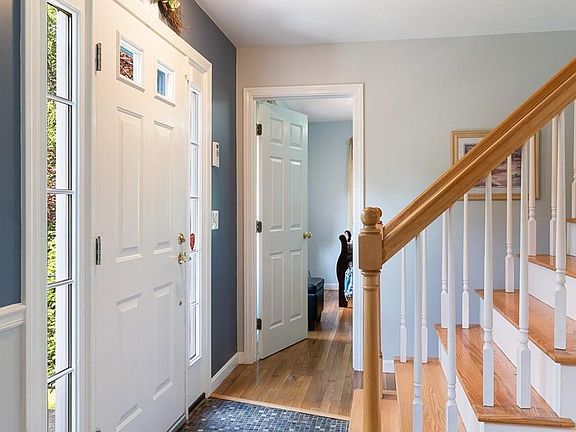 Fantastic colonial nestled on close to 2 acres of private grounds. Updated kitchen with stainless steel appliances, granite countertops, kitchen island and additional eat-in dining area. Bright and open dining room with chair-rail moldings and overhead chandelier. Front to back great room with cathedral ceilings, new windows and skylights. Designated office or 4th bedroom located on 1st floor. The 2nd floor features a front to back master bedroom with attached bathroom and 2 walk-in closets. 2 additional bedrooms located down the hall with full bathroom. Hardwood floors throughout the entire main living level and second floor. Additional storage available in pull-down attic. The finished lower level of the house offers additional square footage to enjoy with a tile floor and drop ceiling. Updates include: 30 year CertainTeed roof, new skylights, new AC air handler, fresh paint, new garage door openers, and extension of exterior deck.