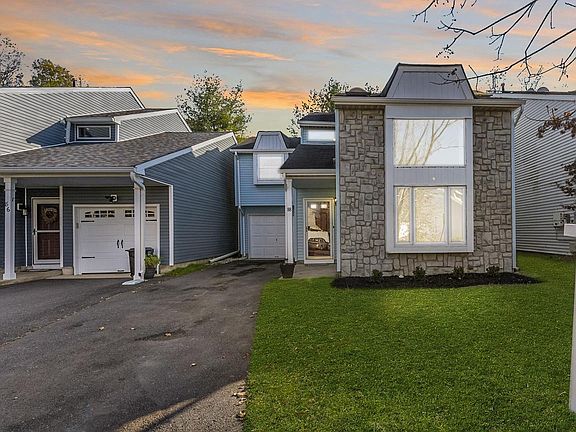 Freshly paint and professionally cleaned throughout, this property located in the Princeton East neighborhood is truly an exceptional value! Fresh landscaping and a low maintenance exterior with vinyl siding greet you up the 3 car driveway and into the covered entryway. Inside, gleaming hardwood floors throughout the first and second floors make a great first impression! Immediately, you will notice this home’s floorplan is drenched with natural light from all angles! The living room’s large, picture windows and 18’ cathedral ceilings with dual skylights set the tone for the rest of the home! The well appointed kitchen has updated white cabinetry, stainless steel appliances, breakfast bar for dining, and a window cut out into the rear family room. A convenient powder room is tucked away off of the foyer. The rear family room and formal dining area is the ultimate living space, appointed with recessed lighting, floor-to-ceiling windows, a woodburning fireplace with brick facade, and sliding glass doors out to the fully fenced backyard with covered patio area and storage shed. The best part of this home is the private yard, with no rear neighbors and expansive greenspace! Upstairs, there are two generously sized bedrooms, one with vaulted ceilings and a walk-in closet. The hall bath is neutral and clean with a tub shower and large vanity. Convenient second floor laundry is available at the end of the hall! The primary bedroom features dual walk-in closets with built in shelving and an updated primary bath with stall shower! Additional features include newer Central AC and heating and updated replacement windows. With low taxes, close proximity to Route 130, NJ Turnpike, and 295, and move in ready condition, this home is a winner! Don’t miss this one!