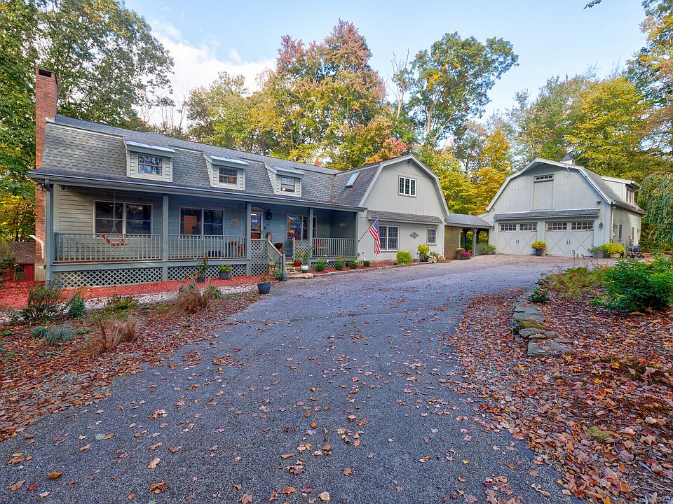 Picture yourself stepping into this enchanting custom log home, where every detail whispers tranquility and luxury. As you walk through the front door, you're greeted by the warmth of rustic elegance and the promise of modern comfort. Imagine relaxing on one of the multiple covered porches, a cup of coffee in hand, as you breathe in the fresh air. The home features a fully renovated kitchen, designed with modern amenities to make cooking a delight. The heart of the home, the family room, is highlighted by a striking stone fireplace, perfect for cozy gatherings. The primary master suite is a true retreat, featuring a beautiful Jacuzzi tub, perfect for unwinding and relaxation. Feel the ease of living with two large pantries and the versatility of potential in-law accommodations, catering to your every need. The oversized two-car garage, complete with a full workshop and ceiling fans, invites you to explore your hobbies and projects. Visualize yourself maintaining your fitness routine in the walk-out gym, or enjoying the luxurious updated bathrooms after a long day. As you explore the 2.20-acre property, discover the private trail leading to Witch Meadow Creek, an idyllic spot for moments of peace and reflection. In the evenings, gather around the inviting outdoor fire pit with loved ones, sharing stories under the starlit sky. The large farm-style shed stands ready to house your tools and treasures, enhancing the practicality of this extraordinary home. Please remove shoes when entering home.
