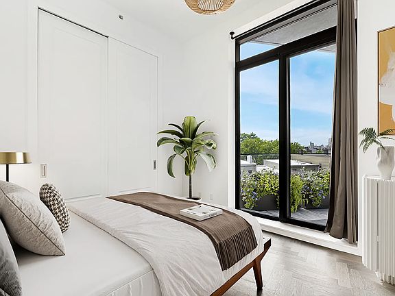 88 Withers 4A, designed by Brooklyn-based Zproekt Architects to be a postmodern masterpiece in Williamsburg, is easily one of the most luxurious 1BR apartments in the entire neighborhood. Sporting soaring 12' ceilings and wall-to-wall windows opening out onto an enormous private 175 sq ft entertaining terrace, this eastfacing unit is so sunny it renders any interior lighting cosmetic. This particular unit is also conveniently situated in the rear of the building for maximum quiet.