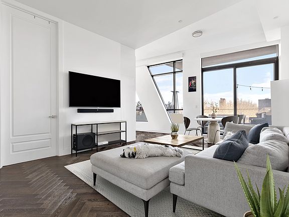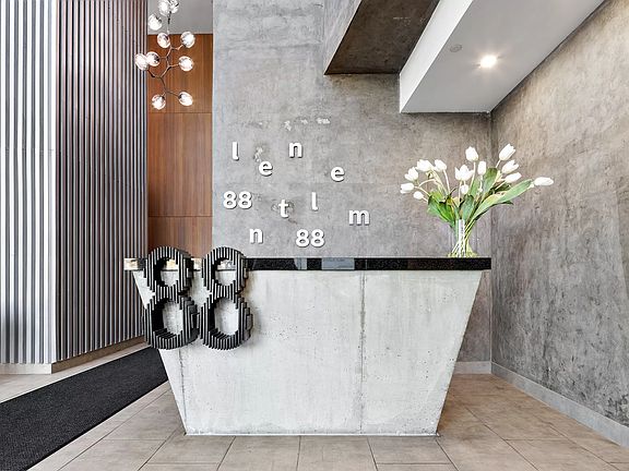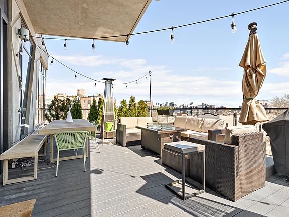 Welcome to residence 4F at Element 88, a gorgeous light-filled two-bedroom, one bathroom home. Upon entering, get ready to be dazzled by stunning 12' high ceilings and 10' high doors. The massive window exposures in the living/dining area overlook an East-facing oversized private terrace. It is the perfect spot to enjoy a cup of coffee and the beautiful sunrise every morning. Elegant interior design elements include pre-finished Tierra herringbone European oak flooring and imported Italian Scavolini custom kitchen cabinetry. The spa-like bathrooms boast a striking black marble feature wall beautifully paired with the luxe Toto and Grohe fixtures. No expense was spared on the appliances in this residence. You will find a Bosch stackable washer/dryer in the dedicated laundry closet, a Bertazzoni range, Delta Touch faucets, and a high-grade white lacquer-paneled refrigerator and dishwasher in the kitchen. A smart Mitsubishi concealed slim-duct heating & cooling system with VRT independent zoned climate control makes the space comfortable in any season. 88 Withers features an attractive amenity package including a Residential lobby with impressive 20'+ high ceilings, a cozy seating area, and virtual doorman reception/package room + delivery system. The second floor contains the indoor/outdoor 6,000 sqft Element 88 Park. This area has everything a resident could desire: a large wet bar, commercial grill, kid's play zone, sumptuous lounge area, and lush turf perfect for sunbathing. On the lowest level, you will find the state-of-the-art fitness center equipped with the latest cardio and strength training equipment. Also on this floor, is the pet-grooming room. (Additionally, parking and a spacious private storage room are available for purchase.) Located in Williamsburg, at the crossroads of Greenpoint and East Williamsburg, Element 88 is located in very close proximity to some of the most renowned and innovative bars, restaurants, cafes, and boutique shops in all of Brooklyn. You are also 4 blocks away from the famed McCarren Park and 2 different subway lines.