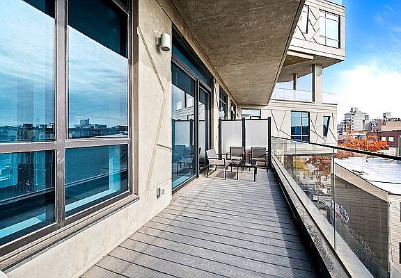 Sun Drenched 24' Long Private Balcony & Soaring 12' Ceilings Open the oversize 10' custom door from the exquisite designer hallway and your eyes are immediately drawn to the view from your 24' wide private south-facing balcony! Inside your floor-to-12'-ceiling windows allow for copious amounts of direct sunlight to bounce off of the herringbone European oak flooring and into the open floor plan of the exquisitely appointed living space. To your left, double-decker Scavolini custom kitchen cabinetry, white marble countertops, a vented Bertazzoni stove, concealed Bosch dishwasher, and Delta Touch faucet await you in your entertaining chef's kitchen. To your right is the in-unit Bosch washer & dryer, spa-like bathroom with dramatic black marble with Toto and Grohe fixtures, plus a fully customized 10.5' tall closet. The smart Mitsubishi concealed slim-duct heating and cooling with VRT independent zoned climate control keeps the queen-size bedroom the perfect temperature for sleeping and the living room the perfect temperature for living. The bedroom also has custom black-out shades and a fully customized 10'6" tall closet. This brand-new boutique 33-unit condominium building located at the intersection of Williamsburg and Greenpoint. A virtual doorman service provides delivery access to the secure package room. Each floor offers soaring ceiling heights, designer lighting, and is exquisitely maintained by on-site building staff. Experience the roof deck's expansive panoramic views of Manhattan, Brooklyn, and Queens. The communal entertaining deck features a full outdoor kitchen. A fully equipped fitness center is located on the lower level. Parking may be available for rent in the future by waiting list only. Pets will be considered on a case-by-case basis. Chic and elegant. Modern yet classic. Experience luxury living at Element 88.