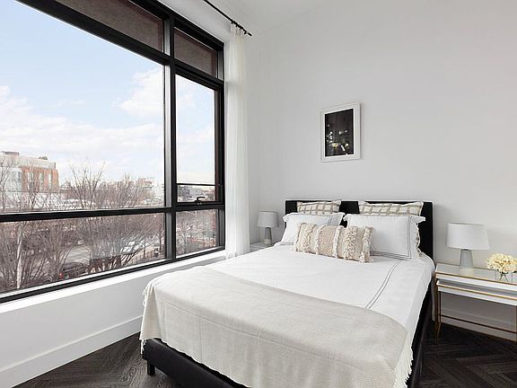 Bright, with an open view elegantly-designed 2-bed with 2-full baths and an incredibly efficient layout featuring 12'-high ceilings, 10'-high doorways, and re-finished Tierra herringbone oak flooring. The open kitchen has Italian Scavolini custom cabinetry, built-in refrigerator & dishwasher, a Delta Touch faucet, and a Bertazzoni range. The bedrooms feel incredibly spacious, with the primary bed having dual closets and a spa-like ensuite marble bath outfitted in Toto and Grohe fixtures. The home is complete with a stackable washer & dryer and smart Mitsubishi heating and cooling with independent zoned climate controls. In addition, a parking space is offered for rent for $250. Element 88 is a striking building in Williamsburg, at the crossroads of Greenpoint and East Williamsburg, with a multi-level package of perks dedicated to enriching resident lifestyle including a 6,000-SF indoor/outdoor amenity space featuring a large wet bar & grill, kid's play zone, lounge area, and a turf & sunbathing area. There is a state-of-the-art fitness center, a pet-grooming room, Element Work Rooms and storage rooms available for rent, a reception/package room & delivery system, and a virtual doorman. Near to some of Brooklyn's most renowned and innovative bars, restaurants, cafes, and boutiques, as well as McCarren Park and 2 subway lines.
