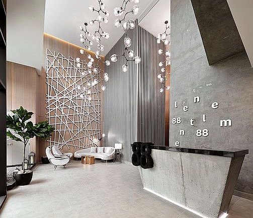 Elegant, bold designer lobby featuring 22 ft. ceilings, virtual doorman reception/package delivery, indoor/outdoor 6000 sq. ft. park with grill kids play zone, turf and sunbathing area, state-of-the-art fitness center featuring cardio and strength training equipment, and a pet-grooming room. 12-foot-ceilings, herringbone European oak flooring, Bosch stackable W/D in the laundry closet, Scavolini custom kitchen cabinetry, Wolf professional range and hood, Delta Touch faucet, high grade white lacquer-paneled refrigerator and dishwasher, and smart Mitsubishi concealed slim-duct heating and cooling with VRT independent zoned climate control. Large marble bathrooms include Toto and Grohe fixtures and custom vanities.