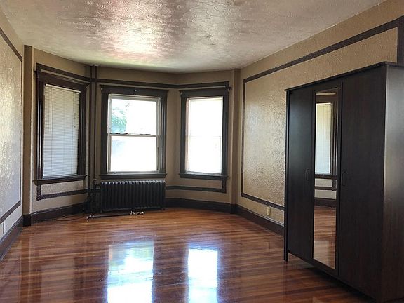 Very large 2nd and 3rd floor 6 bedroom 2 bathroom apartment on a quiet street near the Fairmount and Franklin commuter rail station and the Forest Hills Orange Line T stop. 2 bedrooms, kitchen, central room, and bathroom on the 2nd floor and 3 bedrooms, central room, and full bath on the second floor. Large eat-in kitchen (need to bring your own refrigerator), bright rooms, lots of storage, with a balcony overlooking Woolson Street, and a back porch overlooking the back yard. Coin-op Washer/Dryer in basement.