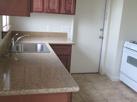 This is nicest, sunny, quiet 2 bedroom unit in the building on top floor in rear. No common walls with neighbors, just quiet active couple below. 5 closets. Charming updated large flat with real oak hardwood floors. Freshly painted, tile floors in bathroom & kitchen. Great location 7 Blocks to MacArthur BART, Pak n Save, Emeryville shopping center, bikers paradise score of 100, walk score is 86!! Kitchen has room for dining table and great morning sun through 2 windows. Solid wood cabinets, granite counters, gas stove, microwave and ceramic tile floor. Parking spot in garage can be added for extra fee. Rear outdoor area with plum trees and room to BBQ. Laundry on site. Many residents ride bikes, take BART or walk wherever they go since flat and central location. Freeway entrance a block away. Pets negotiable if under 60lbs. Owned and managed by a professional property manager, who takes pride in the building and creating a friendly community of carefully screened Residents. Available now. Please call to schedule a tour or for more information. One year Lease term Owner pays water