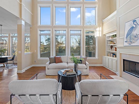 This spacious home is designed for luxurious living and entertaining. Nestled on nearly an acre of land on a quiet cul-de-sac street, this home features a classic all-brick facade and updated landscaping. Step into the grand foyer with soaring 25-foot ceilings, leading to a living room with multi-story windows and a large gas fireplace. The main level includes a sunlit home office and a convenient work nook off the gourmet kitchen, which boasts granite counters, stainless steel appliances, a butler's pantry, and a beverage fridge. The main level luxurious owner's suite includes multiple walk-in closets and a stunning primary bath with separate vanities, a deep soaking tub, and a walk-in shower. Upstairs, a massive bonus room with a second fireplace and an adjacent office/hobby room provide endless possibilities. A second laundry room near the upstairs bedrooms adds convenience. The fully finished basement is an entertainer's paradise, equipped with a wet bar, rec room, media room, and a guest suite. Custom built-ins and ample storage are thoughtfully integrated throughout the home. Outdoor living features an elevated deck facing the woods, offering gorgeous sunset views, and a covered patio. The attached three-car garage and circular driveway provide ample parking. Located in a highly rated school district, this home is just minutes away from popular local restaurants like Edley's and Burger Republic, and less than 10 minutes from scenic Mill Creek Park & Greenway. This home is ready to welcome its new owners into a lifestyle of comfort and elegance.