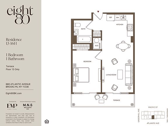 Luxury One Bedroom with Terrace Now Available in Prospect Heights! Now Offering 2 Months Complimentary on a 18 Month Term Elevated Living in the Heart of Prospect Heights - Where Sophisticated Design Meets Effortless Luxury Discover refined city living in this brand-new luxury rental development nestled in the heart of Prospect Heights, one of Brooklyn's most beloved neighborhoods. This vibrant enclave blends historic brownstone charm with a dynamic cultural scenejust minutes from Prospect Park, the Brooklyn Museum, Brooklyn Botanic Garden, and Barclays Center. Enjoy easy access to local cafes, artisanal restaurants, indie boutiques, and multiple subway lines connecting you quickly to the rest of the city. The building offers studio to two-bedroom residencesmany with dedicated home office spaceseach featuring floor-to-ceiling windows, in-unit washer/dryers, and elegant modern finishes designed for comfort and flexibility. DESIGNED FOR A LIFE WELL LIVED At Eight80, home extends beyond your front door. Our thoughtfully curated amenities cater to every aspect of your lifestyle, from wellness to entertainment. Amenities Included: Attended Lobby Lobby Lounge Onsite Parking Package Room Fitness Center w/ Rock Climbing Wall Cold Plunge & Dry Sauna Yoga Studio Landscaped Garden Roof Deck w/ BBQ and Sweeping Views Game Room w/ Billiards & Ping Pong Movie Room Pickleball Court Children's Playroom Co-Working Space Resident storage Bike Storage Pet Spa Laundry Room PROSPECT HEIGHTS AT YOUR DOORSTEP. Eight80 places you in the heart of Brooklyn's most dynamic neighborhood. With tree-lined streets, vibrant local businesses, and world-class cultural institutions, everything you love about city living is just steps away. Equal housing opportunity. *Photo, video and 3D tours are for illustrative purposes and may not reflect the exact unit *Price shown is Base Rent. Residents are required to pay: At Application: Application Fee ($20.00/leaseholder, nonrefundable); At Move-in: Security Deposit (Refundable) (100%/unit); Monthly: Community Amenity Fee ($70.00/per person); Electric-3rd Party (usage-based); Renter's Insurance - 3rd Party (per unit/once). Please visit the property website for a full list of all optional and situational fees. Floor plans are artist's rendering. All dimensions are approximate. Actual product and specifications may vary in dimension or detail. Not all features are available in every rental home. Please see a representative for details.