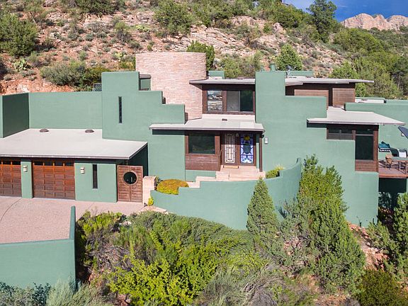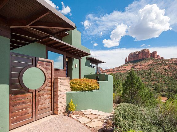 Views! Views! Views! This custom contemporary home was designed to capture spectacular vistas at every angle. Carefully adapted to the environment, its panoramas are unblockable. Sedona's premier architectural firm, the Design Group, & top builder, master wood craftsman, Joel DeTar, collaborated to create a home that nestles into the rocks using the existing space, organically causing the least possible disturbance to the natural environment. The result is a home that uniquely captures the natural beauty of Cathedral, Bell, & Courthouse Rocks, the Oak Creek Valley, the Mingus Mountains, & lights of Jerome. Art & architecture: a perfect marriage.(see 3-D tour in Photos)