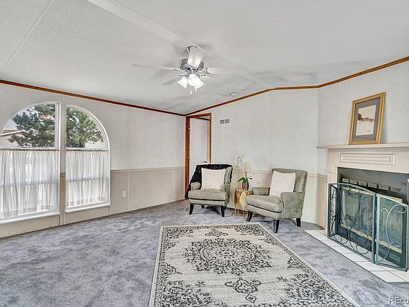 Turnkey, main-level living in Monument Meadows! You will be impressed by the condition and comfort of this move-in ready 3 bedroom, 2 bath, manufactured home built in 2004! Quality 2x4 construction, newer metal roof, plus hurricane tiedowns! Inviting entry to welcome you home features built-in cabinets to hide shoes and backpacks! Spacious living room with a cozy wood-burning fireplace, arched windows and a sliding glass door that walks out to the huge deck for BBQs and enjoying the Colorado sunshine! Spacious kitchen is sunny and well-equipped! All appliances are included! Built-in sideboard cabinets for extra storage in the dining space! Separate laundry room includes the washer and dryer set! Primary bedroom features an en suite bathroom with a soaking tub and a walk-in closet! Two more bedrooms plus a 3/4 bathroom are on the opposite end of the home! Newer carpet! Private yard is partially fenced and offers a peaceful space for pets, a garden and a fire pit! Shed for your lawn care equipment and storage!