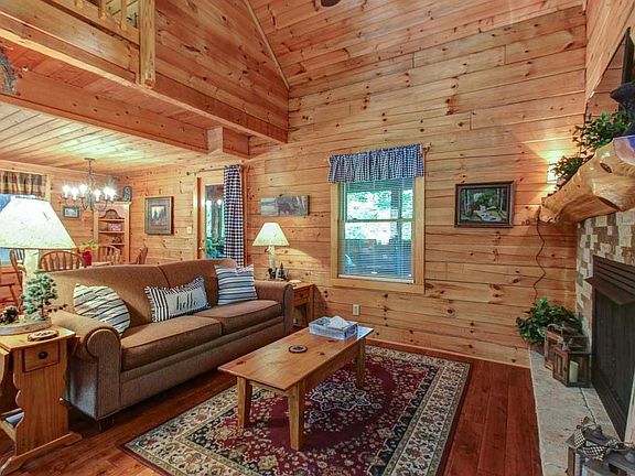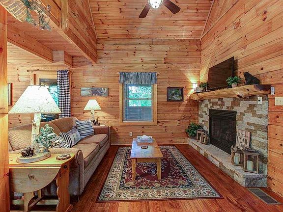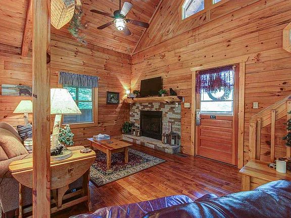 Your perfect mountain getaway is waiting at this rustic log cabin in Hidden Mountain East. The heart of the home is a great room with a handscraped wood floor and exposed beam cathedral ceiling, warmed by a gas log fireplace. The kitchen has stainless appliances, a window box, and an adjacent dining area, while outside a full screened porch allows bug-free dining in the serene wooded setting. Up in the loft the master has a full ensuite bath with whirlpool tub and shower. Downstairs is a community room with queen & bunk beds, foosball, a full bath with laundry, and another full deck with hot tub. This handsome home is in an amenity-rich community with gated security, clubhouse, pool, fitness center, a gazebo park overlooking the Smokies, and more. An established vacation rental, this is close to the Parkway and even closer to breakfast at the Apple Barn ... schedule a showing soon, as this one is sure to go fast!