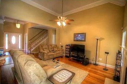 RHONDA DUFFY 678-318-3613 DuffyContracts@gmail.com Remarkable brick ranch resting on hole#2 of Georgia National Golf course. Inviting columned front porch welcomes you.Barely lived in interior includes: foyer entryway,hardwoods,extensive trim,open concept living,vaulted fireside family,chef eat-in kitchen w/bar,granite,tile backsplash&floor,split bedrooms, owners retreat w/bay window/sitting area&vaulted spa-like bath,teen/guestsuite/ bonus room&private bath up,entertaining patio&deck overlooking oversized backyard&golf course.Desirable school district move today! 11/27/13