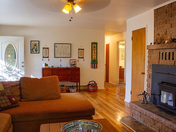 Welcome to this delightful 3 bedroom 2 bath home offering a spacious and inviting floor plan, perfect for comfortable living and entertaining. The kitchen features a dedicated dining area, ample cupboard space. Original hardwood floors in living room, dining room, and hallway. The cozy living room is warmed by both wood and monitor oil heat, creating a welcoming atmosphere year-round. Enjoy the convenience of an attached 2-car garage with plenty of room for storage, hobbies, or even a workshop. Step outside to beautifully landscaped front and back yards offering privacy and tranquility. Relax or entertain under the covered patio while taking in scenic views. The backyard also features a dedicated garden area and fruit trees—ideal for the gardening enthusiast. This well-maintained home is a must-see for anyone looking for comfort, charm, and outdoor enjoyment.