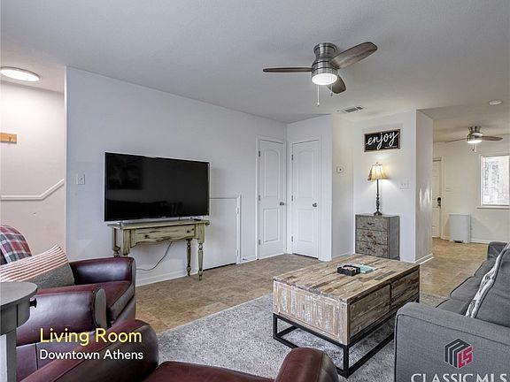 Embrace modern living, prime location, and the excitement of planned nearby redevelopment efforts with this charming townhome in downtown Athens. Owning this gem means you have both land and a residence without the concerns of an HOA. Beautifully and tastefully updated in 2021, this two-bedroom, 1.5-bathroom townhome is convenient to the University of Georgia, making it an ideal spot for university fans or those craving the urban lifestyle. Previously used as a rental property, the townhome could be used as a personal residence or as an investment opportunity. The main living space is clean and contemporary with fresh flooring and neutral décor. The kitchen includes gray cabinetry and countertops, open shelving, and stainless-steel appliances. The floor plan is all about maximizing living space with the open transition from dining to living areas. A nicely updated half bath includes contemporary fixtures and extends the neutral gray color scheme from the kitchen. Upstairs, you’ll find two cozy, carpeted bedrooms alongside a well-appointed full bathroom. A back entrance leads out to a covered patio that includes access to a utility room that includes a washer and dryer, as well as enough space for an upright freezer, secondary refrigerator or bonus storage. The unit’s fenced backyard includes perennial plants and a large shade tree. Two dedicated parking spots are located directly behind the property for easy access. The property is being sold fully furnished, presenting a turnkey solution for immediate occupancy or quick turnover for renters. Beyond the property itself, this is a location you’ll want to consider. The adjacent North Downtown Athens Redevelopment initiative will enhance the neighborhood with upscale shopping, fine dining, and create an incredible quality of life for residents. Cultural experiences are a stone's throw away at the Lyndon House Arts Center, and Lay Park's recreational offerings, including a swimming pool, tennis, and basketball facilities, are also nearby. Just eight blocks from the iconic UGA Arch and within a comfortable stroll to planned urban green spaces, this townhome is a great opportunity for those who appreciate a great living space and an even better location!