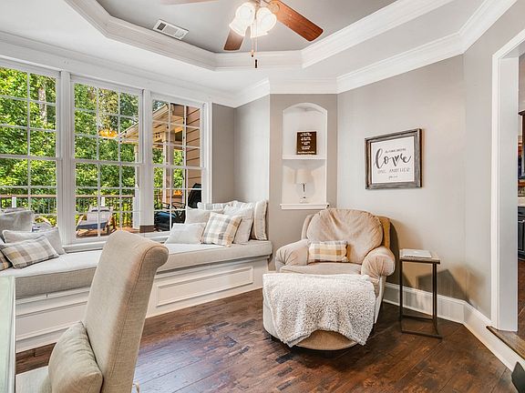 Spotless 5 BR + 3 1/2 BA with covered back porch. Open Floor plan! New Hardwood Floors on Main! Plantation Shutters. Updated Kitchen has granite countertops, tile backsplash, and butcher block island. Newer appliances. Family Room with cedar coffered ceiling, built-in bookshelves, and stone fireplace with cedar mantel. Flex room w/ custom built window seat and makes a great home office. Bedroom on main. Dual staircase. Updated laundry room with cabinets, folding counter and barn door. Huge Master BR with extra sitting room and coffee/refreshment bar. Master BA has neutral tile, dual vanities, and huge master closet. Jack and Jill bedrooms. 4th bedroom upstairs with ensuite bathroom. Huge Bonus room great for media room, kids playroom, or extra bedroom. Newer Roof & recently painted. New garage doors. Outdoor living at it's finest on this custom IPE hardwood deck with covered porch and custom handrail, built in barter/kitchen with fridge, sink, and cabinets with wine storage. Built in grill area with pergola. Fully fenced yard, paver patio with fire pit and outdoor landscape lighting. Swim / Tennis amenities and great schools!
