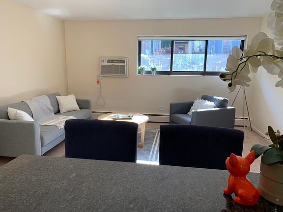 March 1st, or sooner. 2 Bed, 1 bath with heat and hot water included. 1st floor unit in a 40 unit apartment building. Wall to wall carpet, granite and stainless kitchen with dishwasher, coin laundry. A/C wall unit in the living room. Eat in kitchen. No pets or smoking allowed. 1st, last, $50 key deposit and 1 month realtor fee due at lease signing. Contact Jeanine Murphy at Compass Realty 1st, last, $50 key deposit and 1 month realtor fee due at lease signing