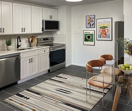 Bright 3-bedroom, 1-bath corner unit at The 880 on the 3rd floor with elevator access, private balcony, eat-in kitchen, and cozy living room. Rent is $3,250/month including heat and water. Laundry in building (coin or app), pet-friendly ($50/month per pet), and off-street parking available for $250/month. Upfront costs: first and last month's rent. Lease term: 10 12 months.