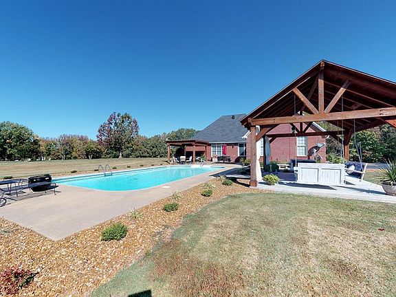 Live your best life in the country only minutes from town. Beautiful contemporary brick home on 32 acres perfect for wildlife habitat w/phenomenal view from your back patio pergola. 3 Bedroom home w/bonus room and room for expansion sitting on some of the most spectacular land in Carroll County. Property has a 3-acre stocked lake w/well pump and dock; back patio w/2 western red cedar pergolas leading to your in-ground salt water pool and also has a heated detached garage w/shop and full bath. Property also has a 500 sq. ft. tiny home currently being used for storage. Home has kitchen w/granite countertops, stainless steel appliances, breakfast nook, and separate dining room.