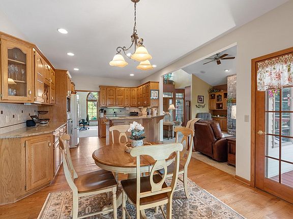 *Back on the market and no fault of the seller* Beautiful split ranch home on secluded cul-de-sac combines quality craftsmanship with a prime location. Kitchen offers hwds flr, granite countertops, tile and breakfast bar w/dinette area. Great rm w/wood burning frpl. Tiled flr in 4-season rm offers patio doors leading to private back yard w/beautiful sunset views of the conservancy. Generous size deck w/retractable awning. Master bedrm with walk-in closet, walk-in tile shower, tub & granite countertops. Laundry rm off garage w/half bath. LL w/egress windows & plumbed for bath. The partial exposure is ready for finishing & can add extra sq. ft. to this home. Updates include: Creative curbs installed Spring '25, New A/C 2024, Full bath w/new sandstone countertop & laminate flr,