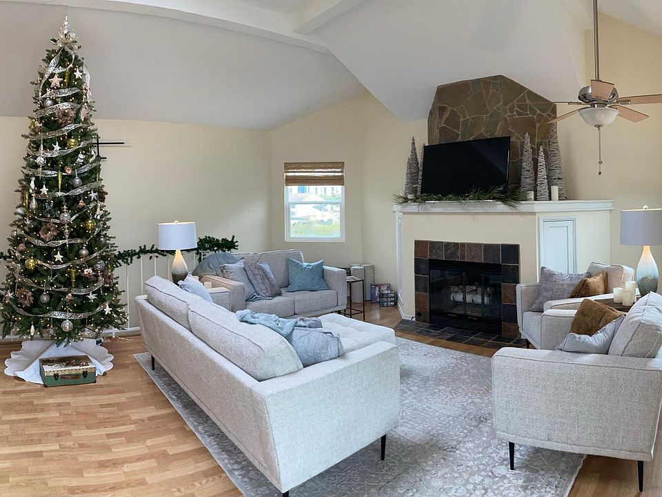 Beautiful home located in The Heart of Carlsbad Village only a block and a half from restaurants and shops and five short blocks to the ocean. Completely renovated and all furnishings, mattresses and decor are new. Dining, shopping, walking, hiking, biking and ocean all at your fingertips. 4 bedroom suites each with its own bathroom. Utilities, FirestickTV and Internet included. The third-floor is your master bedroom suite, kitchen, dining and entertaining area with fireplace and outdoor patio equipped with gas grill and comfortable seating for enjoying the sea breeze. Owner to share one bedroom suite 10 days out of a month*. Small hypoallergenic dog considered. No smoking or vaping. All house cleaning included bi-monthly with the exception of laundry. Two car garage parking. All utilities and Internet included, kitchen fully stocked.