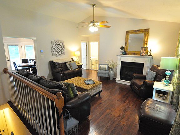 This updated ranch in Rainbow Forest features a large living room with vaulted ceilings and a fireplace, a modern kitchen with painted cabinets, granite countertops and SS appliances, a private master suite with a walk-in closet and oversized bath with a garden tub, two additional bedrooms and laundry on the entry level. The downstairs has two enormous living spaces (one currently used as a 4th bedroom) and a full bath. Numerous improvements have been made over the past few years including new hardware on all interior doors, new lighting and paint, hardwood floors installed in the master bedroom and going down the stairs to the basement, and new faucets and hardware in the kitchen and all bathrooms. Other selling features include a garage on the main level that goes straight into the laundry and kitchen, a brick pavered covered front porch, trex decking on the back deck, granite in both upstairs bathrooms, plenty of unfinished storage space in the basement, gutter guards, and a wooded private lot.