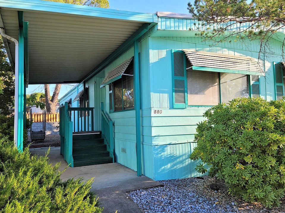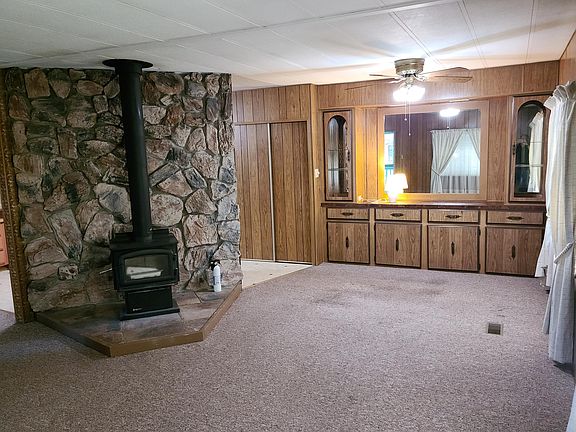 Bright open floor plan. Wood stove with lovely rock hearth, 10x12 ft shed/shop sheet rocked w/ cement floor, large carport. Walking distance to pool.Washer, dryer, refrigerator and microwave stay with the mobile.
