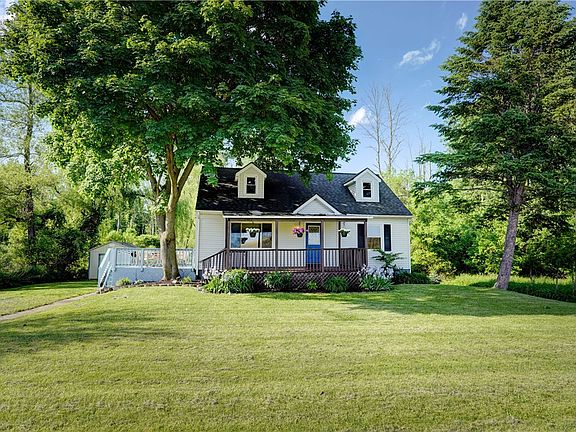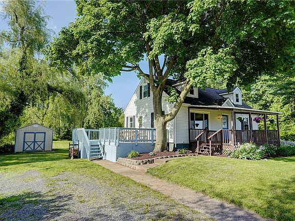 Embrace tranquil living in this beautiful 3 bed, 1 bath Cape Cod home! Nestled on almost ¾ acre of peaceful seclusion, the expansive, nature-filled yard provides the perfect backdrop for outdoor activities, gardening, or simply unwinding amidst your surroundings. The 1st floor features 1 bedroom, 1 full bathroom, 1st floor laundry, eat-in kitchen and an inviting open floor plan. The living room boasts hardwood floors and wood burning stove, while the newly renovated den features luxury vinyl plank and a fresh coat of paint. Upstairs you’ll find 2 more spacious bedrooms, while the basement offers a versatile finished flex space, with convenient walkout egress leading directly to the backyard. As you exit the home from the main floor, enjoy quiet moments of relaxation on the large deck or spacious front porch. Whether you're sipping your morning coffee or hosting a family BBQ, these outdoor spaces offer endless possibilities for enjoyment and connection with nature. All of this and you're still only 10 mins from Wegmans!:) HW Tank (2017). Furnace & A/C (2015). DELAYED SHOWINGS UNTIL THURSDAY 5/30 @ 8AM, DELAYED NEGOTIATIONS UNTIL TUESDAY 6/4 @ 12PM - OPEN HOUSE SATURDAY 6/1 12-2P