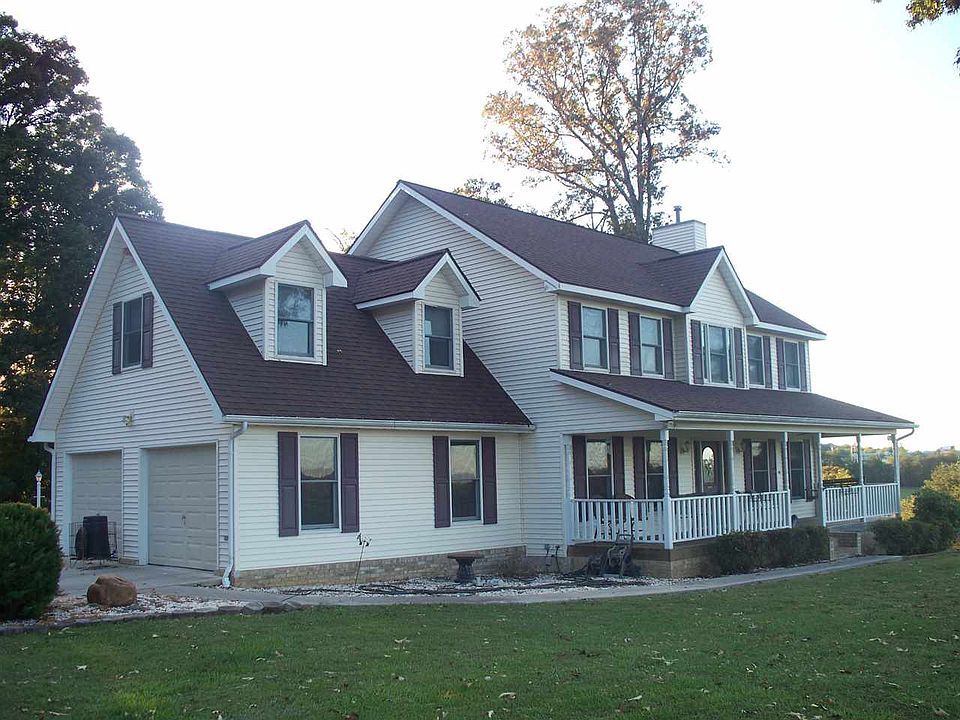 Warm & inviting country style home situated on 7 acres! Breathtaking mountain views. Heavenly pastoral setting. Acreage is mostly cleared around the home with woodland on the back and sides. A great balance of both! Home features a covered front porch, and open back decking. Exterior is of maintenance free vinyl siding. The interior is striking! The large living room boasts a beautiful fireplace & mantle, and chair rail molding. The eat in kitchen has granite counter tops, lots of cabinet space, custom island bar, and all appliances included. A study is adorned with 2 walls of custom oak book shelving, and there's lots of space for a big desk. The foyer is adjacent to the study, and there the stairway leads to the upper level. The spacious master bedroom suite has walk in closet and modern bath with double vanity. Counter tops are marble, flooring is tile. Large shower is complimented by a claw foot slipper tub. There is also a custom builtin perhaps for your sound system or TV. There's a total of 3 bedrooms, plus a bonus room! Full basement is divided into 2 areas, with one side perfect for storage- having a large exterior door for getting lawn equipment and larger items in & out easily, and the other side could be finished into living area, as it is heated and cooled by the central system. There's a double garage on the main level. There's also a detached metal carport. Wow! All this, and so convenietly located. Never before offered on the market, it is a real find! (Restrictions per deed: No trailers, mobile homes, or prefabricated homes. No junk yards. Not tp be used for public owned or public financed housing projects.)