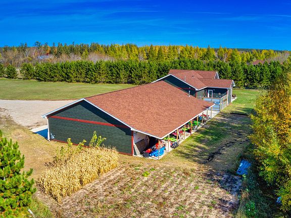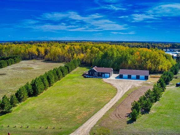5.42 acres to roam and a Newer, 4 BR-3 Bath home with Rustic, Industrial decor. Spacious, open-floor plan Great room with Gas FP greets you as you enter the front door. Main floor master BR, 2 Laundry Rooms! (1-up & 1 down) 40 x 72 heated shop garage with att 10x72 lean-to for storage. Kitchen features Cherry wood cabinetry,Quartz counter top, & also huge center island breakfast bar made of Dekton (Spain), 5 burner gas stove with overhead vent. Home features Open floor plan with Rustic, industrial-style detail. Porcelain tile thru out main floor. Great room Gas fireplace, main-floor Master BR with master bath and walk in closet and private door to outside hot tub. Main-flr office, 16x16 deck off great room. 2 laundry rooms(1-up & 1 down)