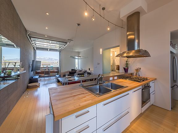 8 on Center is a one of a kind community located on South Center St within walking distance to the shops and dining in Midtown and downtown Reno. Formerly a model home, 880 South Center features soaring ceilings with a large garage door on the top floor that faces the Southwest and delivers some of the most beautiful sunset views in Northern Nevada, designer lighting throughout to highlight artwork, bamboo hardwood and polished concrete flooring, ultra modern Moen and Kohler plumbing fixtures, Corten Steel panels with earth tone rusted patina finish, European Scavolini cabinetry, high-end Miele appliances, drought-tolerant common area landscaping, attached 2-car garage, Solar panels that significantly reduce energy costs, a large additional balcony off of the kitchen and great room, and a 400sf commercially zoned live/work space. This is a one of kind property in one of the most desirable and walkable locations in all of Reno, and it won't last long!