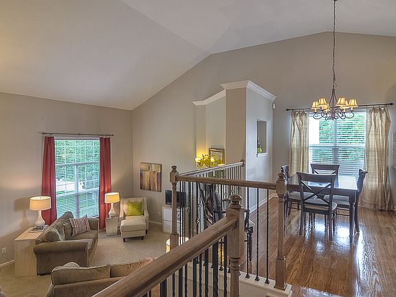 WONDERFUL! This one is move-in ready and gorgeous! Vaulted ceilings in the main area make it light and bright. Beautiful fireplace in the great room. Iron spindles and beautiful wood floors update the space. Great cabinetry, breakfast bar, stone tile backsplash, pantry and spacious dining area comprise the kitchen area. Generous sized secondary bedrooms, a full bath and laundry space round out the main level. Master en-suite is on the upper level. HUGE closet, tiled bath, vaulted ceilings make it special!