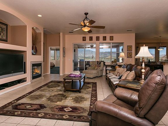 Unobstructed Views of Mingus Mountain & Jerome! The much sought after Sabino floorplan features wonderful open spaces. A tremendous kitchen with convenient island, large breakfast bar & engineered stone counter tops. Spectacular Great Room with built-in entertainment wall and gas fireplace. Escape into the Master Bedroom which features a bay window, separate tub/shower & oversized walk in closet. Enjoy city & mountain views from your extended covered back patio with additional pergola covering, SunSetter Awning, BBQ & hot tub included! Leased solar package assures consistent monthly electricity cost and savings. The Verde Santa Fe Golf Course is just seconds away and you'll be in close proximity to Sedona & Old Town Cottonwood with plenty of restaurants, wine tasting rooms & quaint shops.
